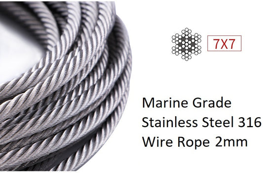 2mm Marine Grade Stainless Steel 316 Wire Rope - Per meter