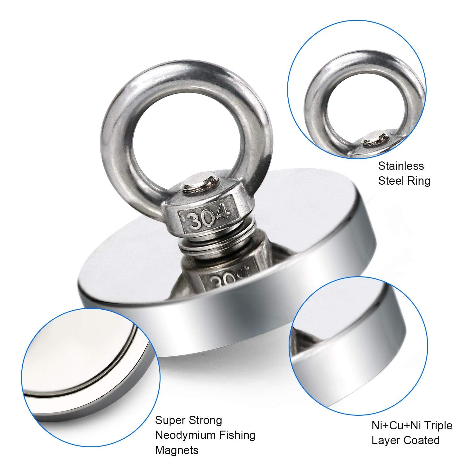 Super Strong Neodymium Fishing Magnets Heavy Duty Rare Earth Magnet with Countersunk Hole Eyebolt for Salvage Magnetic Fishing